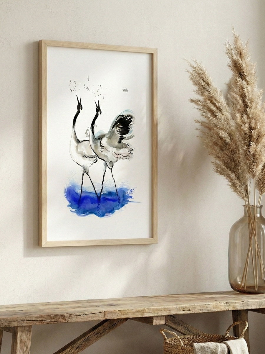 • Cantos de felicidad es comunicación y vínculo expandido. La obra recoge el momento en que las grullas elevan sus voces, ya sea junto a su pareja o integradas en el grupo, y transforman el sonido en gesto visible.