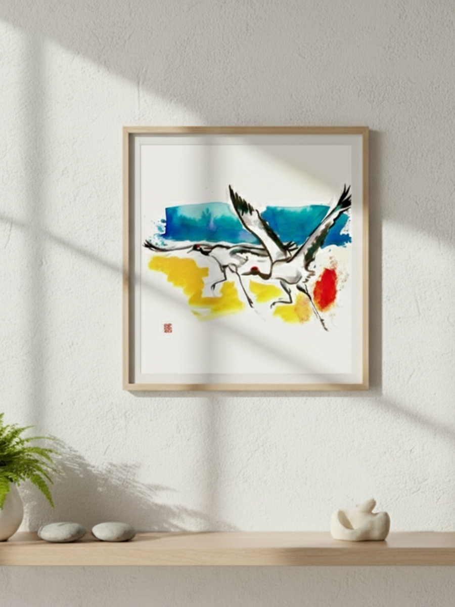 - Impresión de un atardecer resuelto en tres gestos rápidos de color es una obra original de Carlos Pardos, creada en exclusiva para Grullas de Gallocanta, proyecto artístico que celebra la unión entre arte contemporáneo y naturaleza viva. Realizada con tintas y acuarelas sobre papel Hahnemühle de 300 g/m² y con un formato de 40x50 cm, esta pieza captura el momento en que dos grullas emprenden el vuelo sobre los campos dorados de Gallocanta, símbolo del impulso, la fuerza y la continuidad del ciclo migratorio.